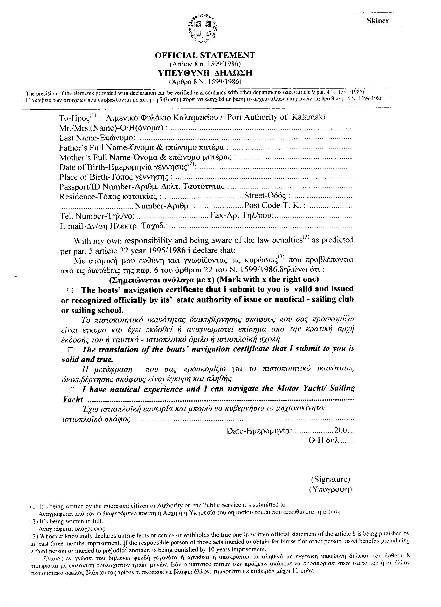 Official Statement for Co-Skipper